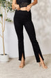 Slit bootcut jeans are a modern twist on the classic bootcut style, featuring a stylish slit at the hem that adds a touch of visual interest. These jeans offer a flattering and elongating effect, making them a fashion-forward choice for both casual and dressier occasions.