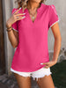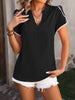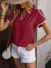 Contrast Trim Pom-Pom Detail Notched Neck Blouse