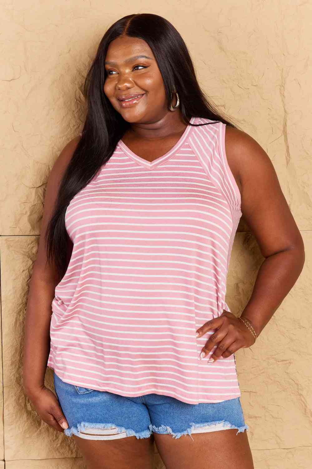 Doublju Talk To Me Full Size Striped Sleeveless V-Neck Top