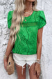 Features: Eyelet Sheer: Opaque Stretch: Slightly stretchy Material composition: 100% polyester Care instructions: Machine wash cold. Tumble...