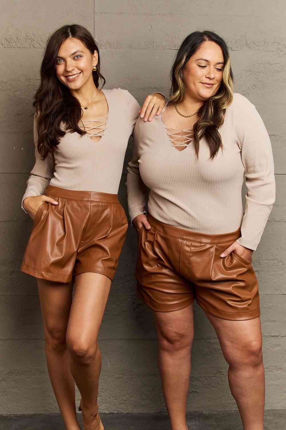 Crafted from soft and stretchy ribbed fabric, this bodysuit offers a comfortable and flattering fit. The standout feature is the alluring lace-up caged neck detail, adding a touch of edge and sophistication to any outfit. Whether you pair it with high-waisted jeans for a casual chic look or dress it up with a skirt for a night out, this bodysuit is sure to turn heads and become your go-to fashion essential. Embrace comfort, style, and confidence with this stunning bodysuit!