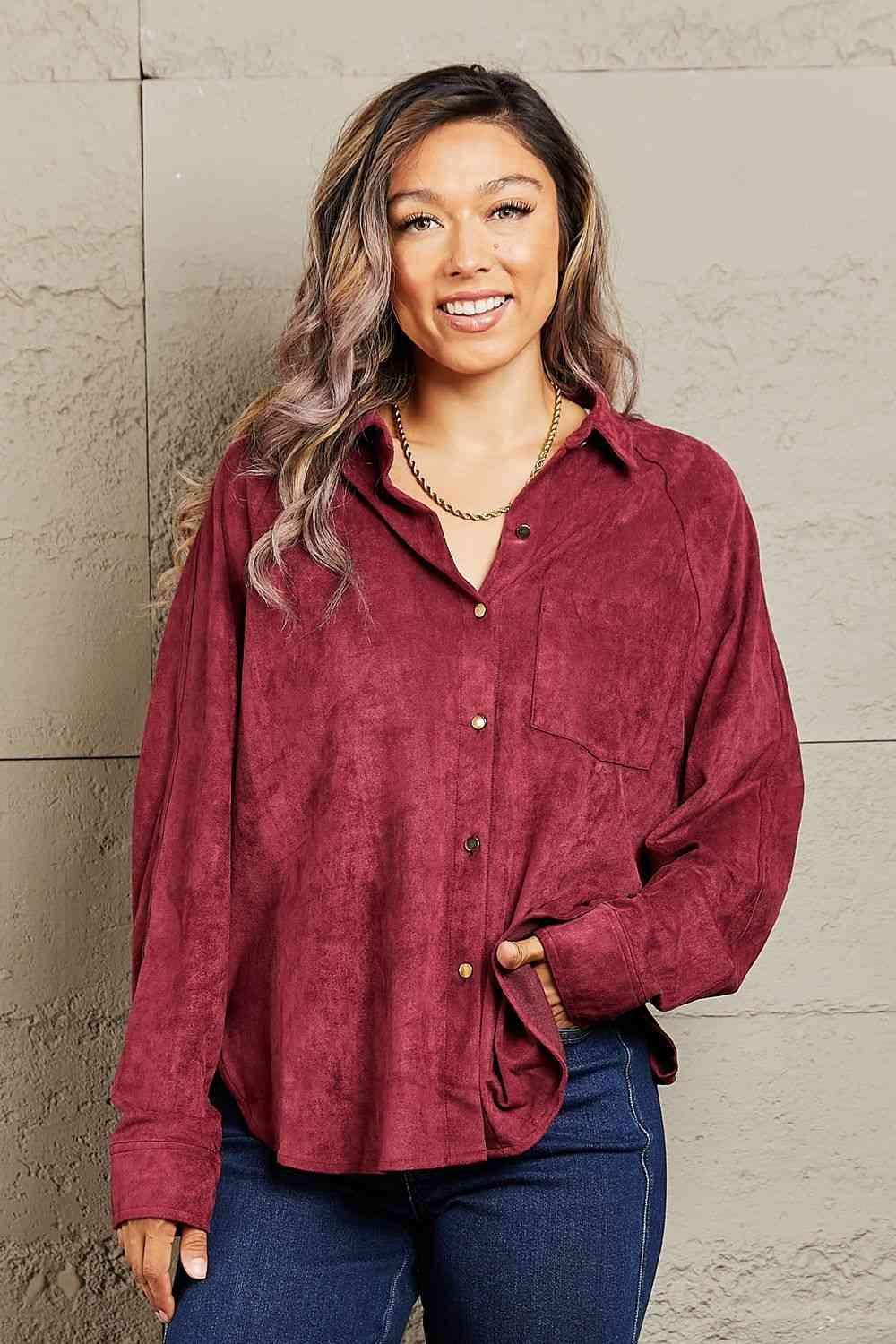 This versatile shirt is designed to make a lasting impression, offering an unforgettable combination of comfort and sophistication. The button-front silhouette ensures effortless wear, while the collar and raglan sleeves with buttoned cuffs add a touch of refinement. The standout feature is the patch pocket at the front, providing a fashionable twist to a classic design. Elevate any outfit with this must-have wardrobe essential that perfectly balances charm and practicality.