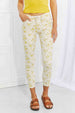 Get ready for sunshine and springtime with these fun floral skinny jeans! They are oh, so stretchy and have a mid-rise waist. Bring out the yellow floral pattern by pairing with a yellow top!
