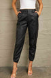 These joggers boast a high-rise waist that flatters your silhouette and provides a comfortable fit. The luxurious faux leather adds a touch of edge to your ensemble, whether you're dressing up for a night out or adding a chic twist to your everyday look. With a relaxed jogger silhouette and a high-fashion edge, these faux leather joggers are a versatile must-have for any fashion-forward wardrobe.