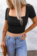 L: bust 32 in, sleeve length 7 in, length 16 in, hem width 28 in