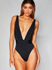 Plunge Wide Strap Sleeveless One-Piece Swimwear